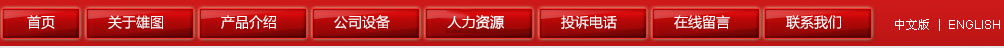 網(wǎng)站首頁 | 關(guān)于雄圖 | 產(chǎn)品介紹 | 公司設(shè)備 | 新聞中心 | 投訴電話 | 在線留言 | 聯(lián)系我們 | ENGLISH 【后臺管理】
